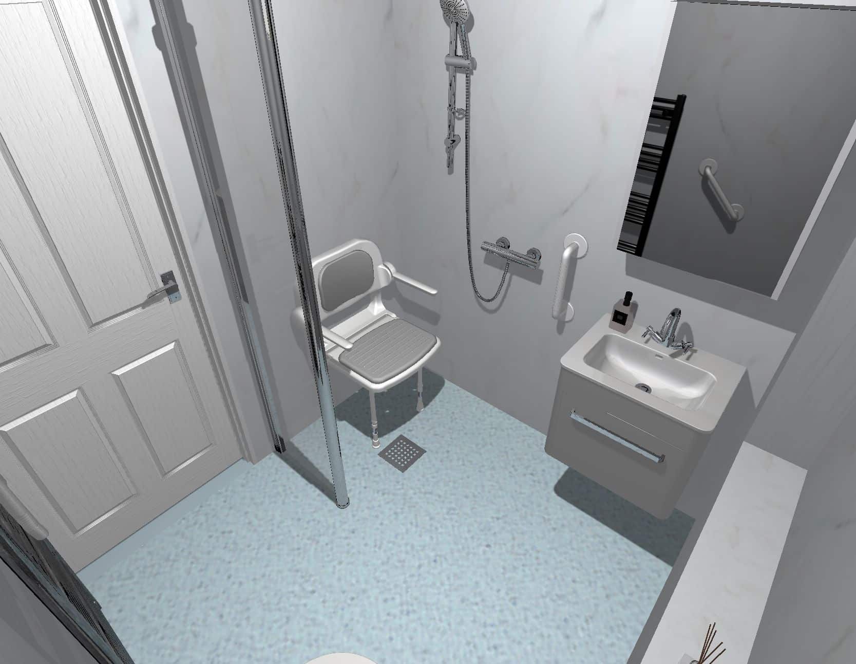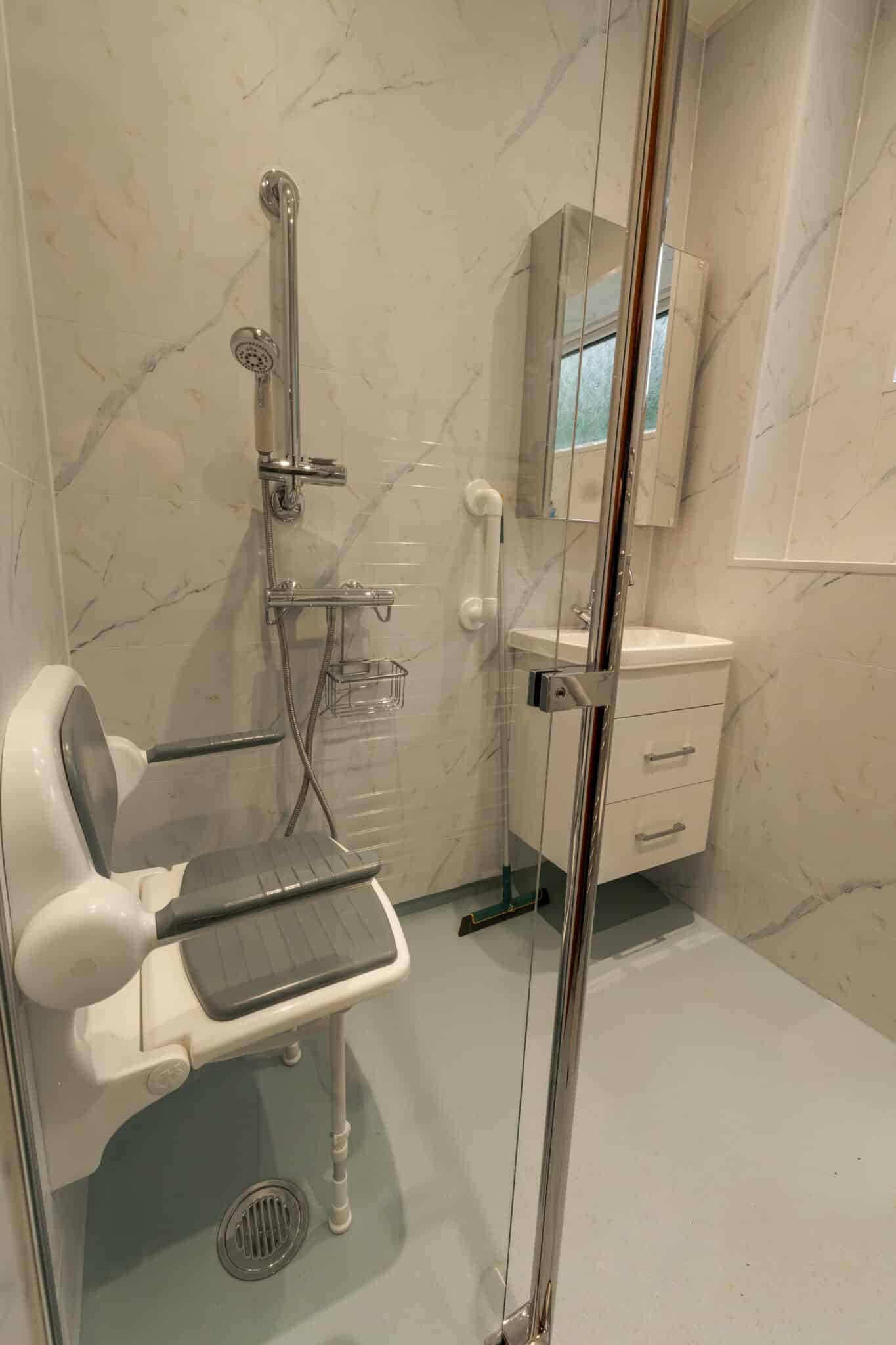 The finished result is a spacious, safe, and stylish bathroom designed with future needs in mind. Dominic now has a practical wet room that offers greater freedom of movement, improved accessibility, and a modern look that will remain easy to use for years to come.