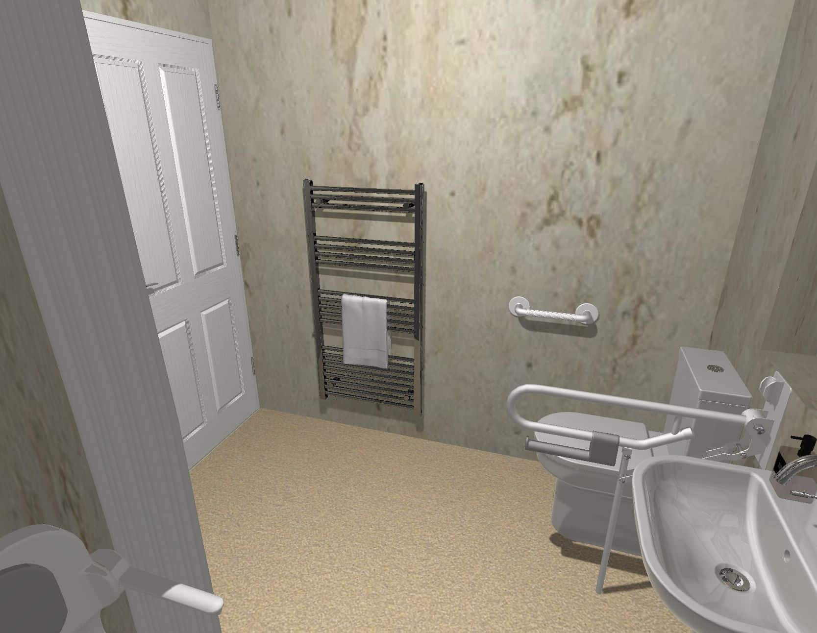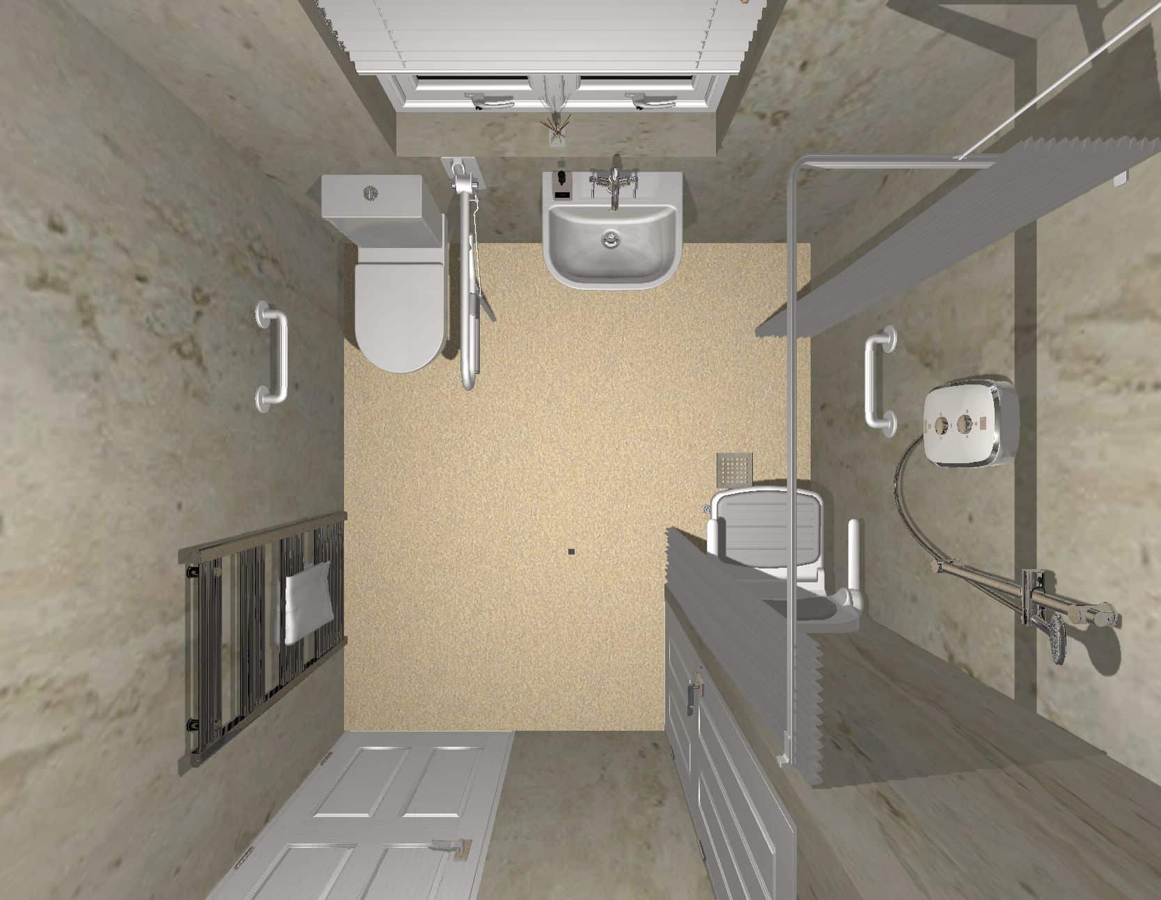 Samantha’s previous bathroom included a standard bath, sink, and toilet, along with grab rails that had been added over time. While these features offered some support, the layout still made daily use restrictive and less practical, particularly when stepping in and out of the bath.